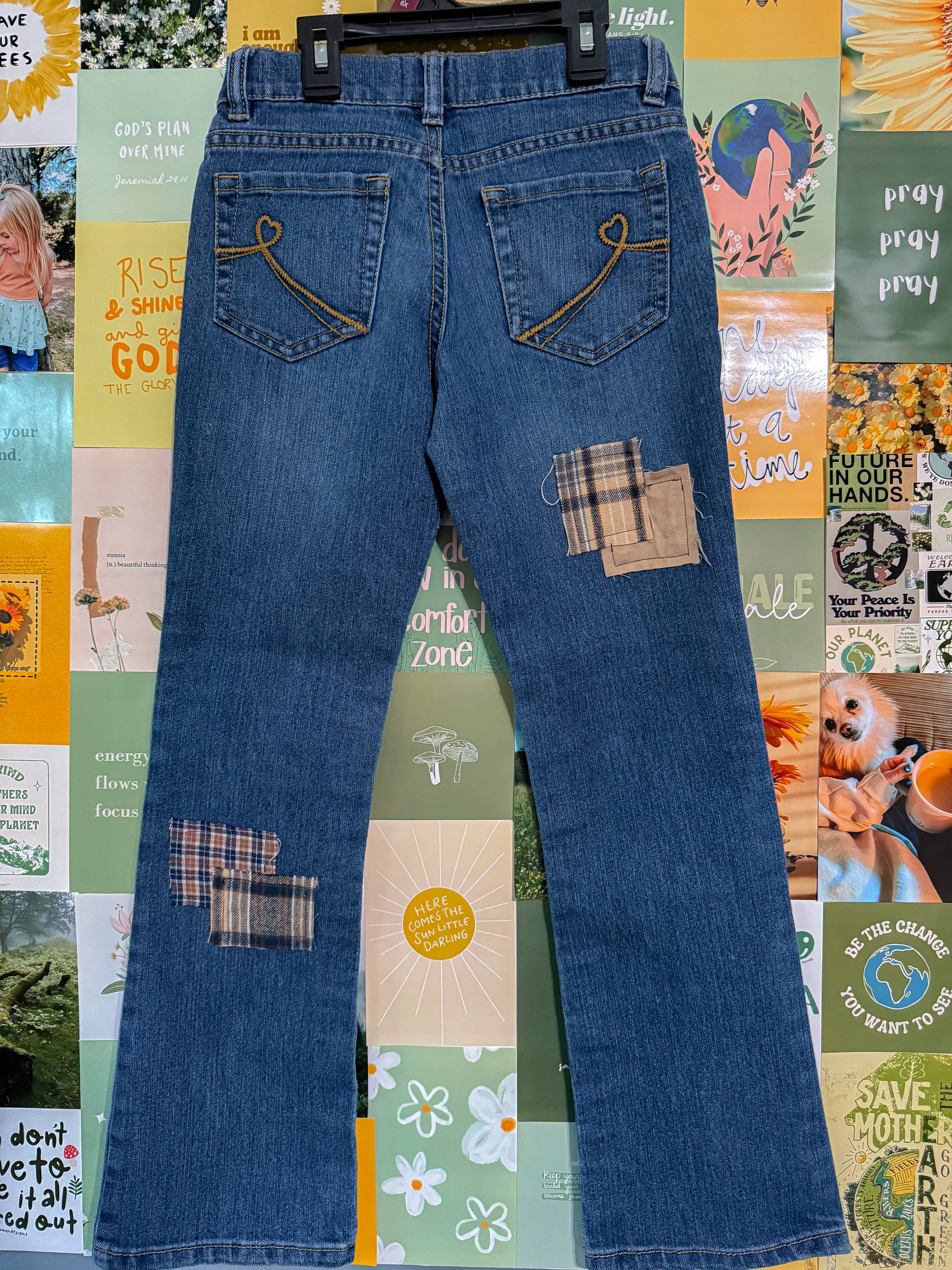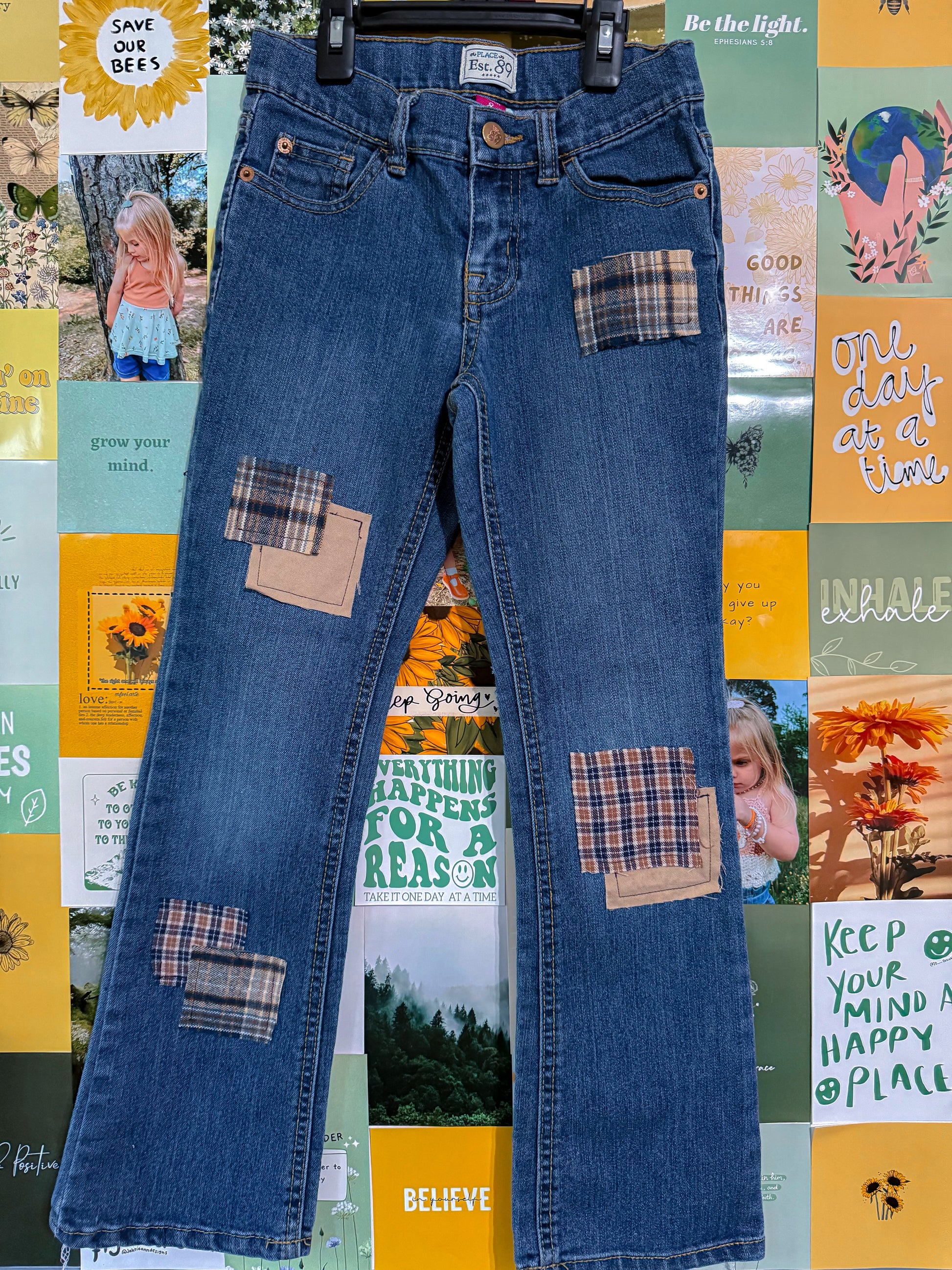 Handcrafted from rescued denim, my Brown Sugar & Cinnamon Denim Jeans give new life to once worn jeans. Each pair is one of a kind, featuring patchworked flannel scraps for a unique touch. Once headed for a landfill, these jeans have been given a new life, eco-friendly with a touch of style. Upcycled from Place brand jeans(Stretch style). Items are ready to ship & will be packaged and shipped in 1-5 business days.