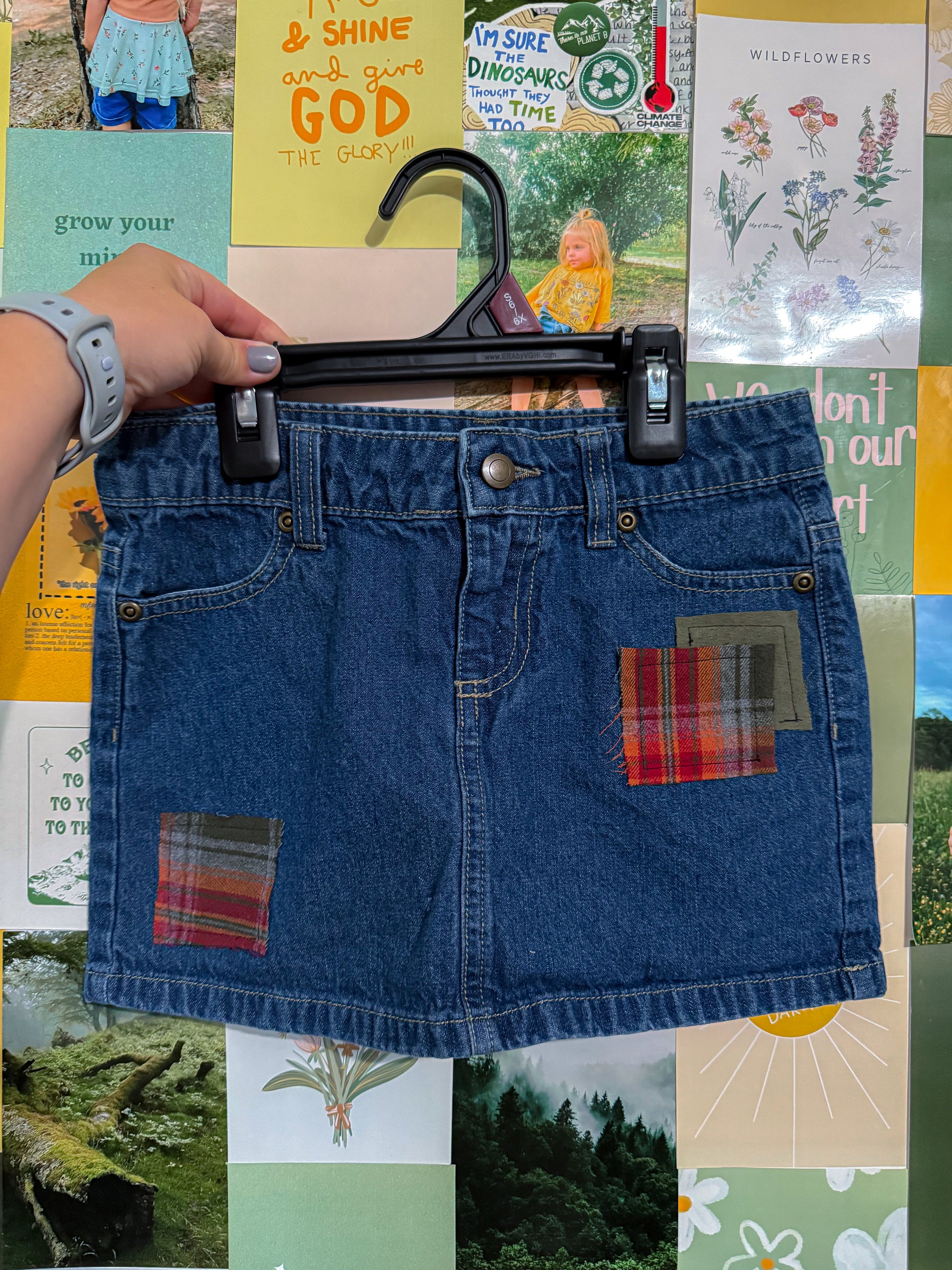 Handcrafted from rescued denim, my Harvest Flannel Denim skirt gives new life to once worn jeans. Each pair is one of a kind, featuring patchworked flannel scraps for a unique touch. Once headed for a landfill, these jeans have been given a new life, eco-friendly with a touch of style. Upcycled from Bobbie Brooks brand skirt. Items are ready to ship & will be packaged and shipped in 1-5 business days.