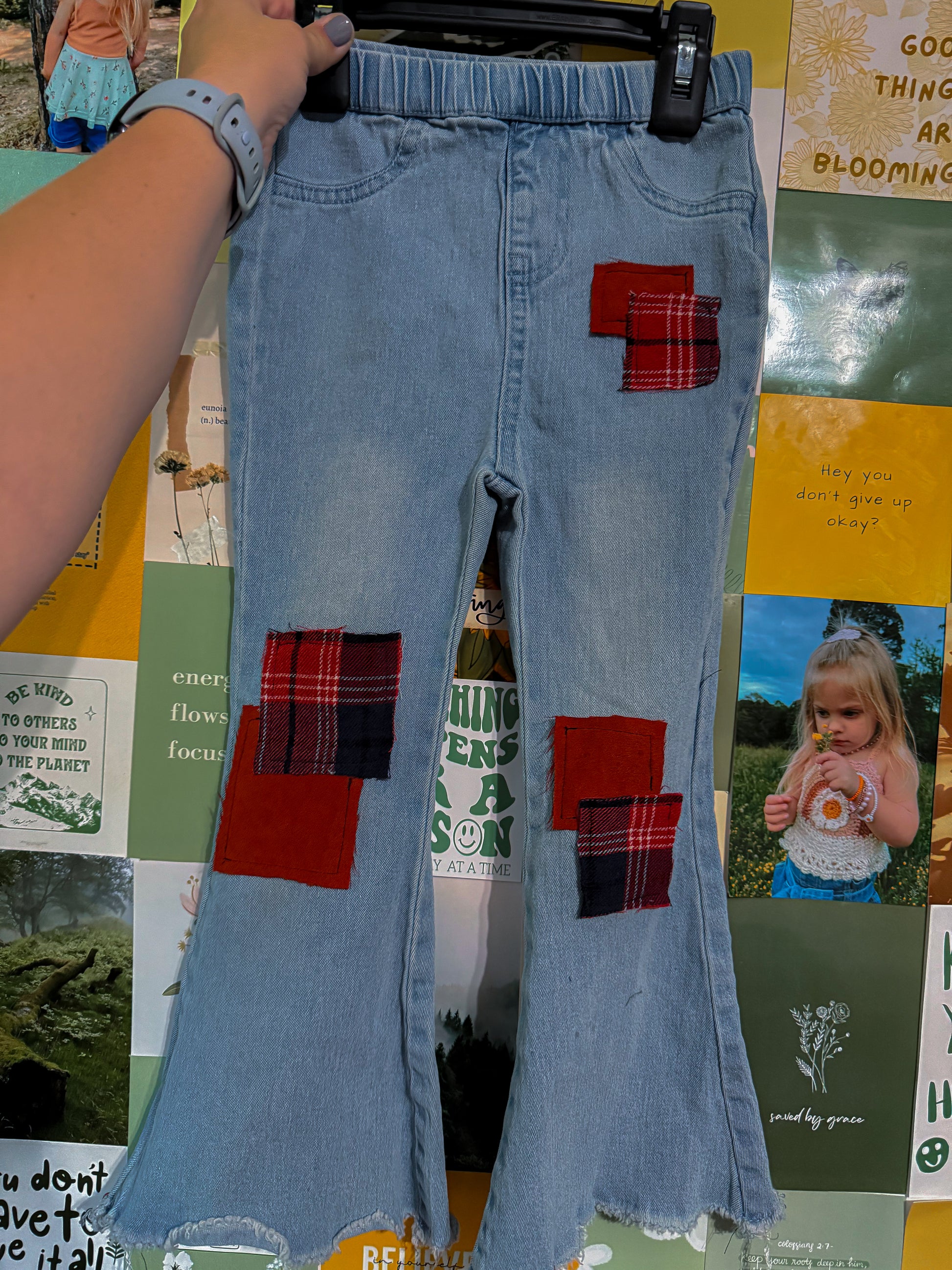 Handcrafted from rescued denim, my Pumpkin Spice Latte Flares give new life to once worn jeans. Each pair is one of a kind, featuring patchworked flannel scraps for a unique touch. Once headed for a landfill, these jeans have been given a new life, eco-friendly with a touch of style. Upcycled from BAiley’s Blossom brand jeans. Items are ready to ship & will be packaged and shipped in 1-5 business days.