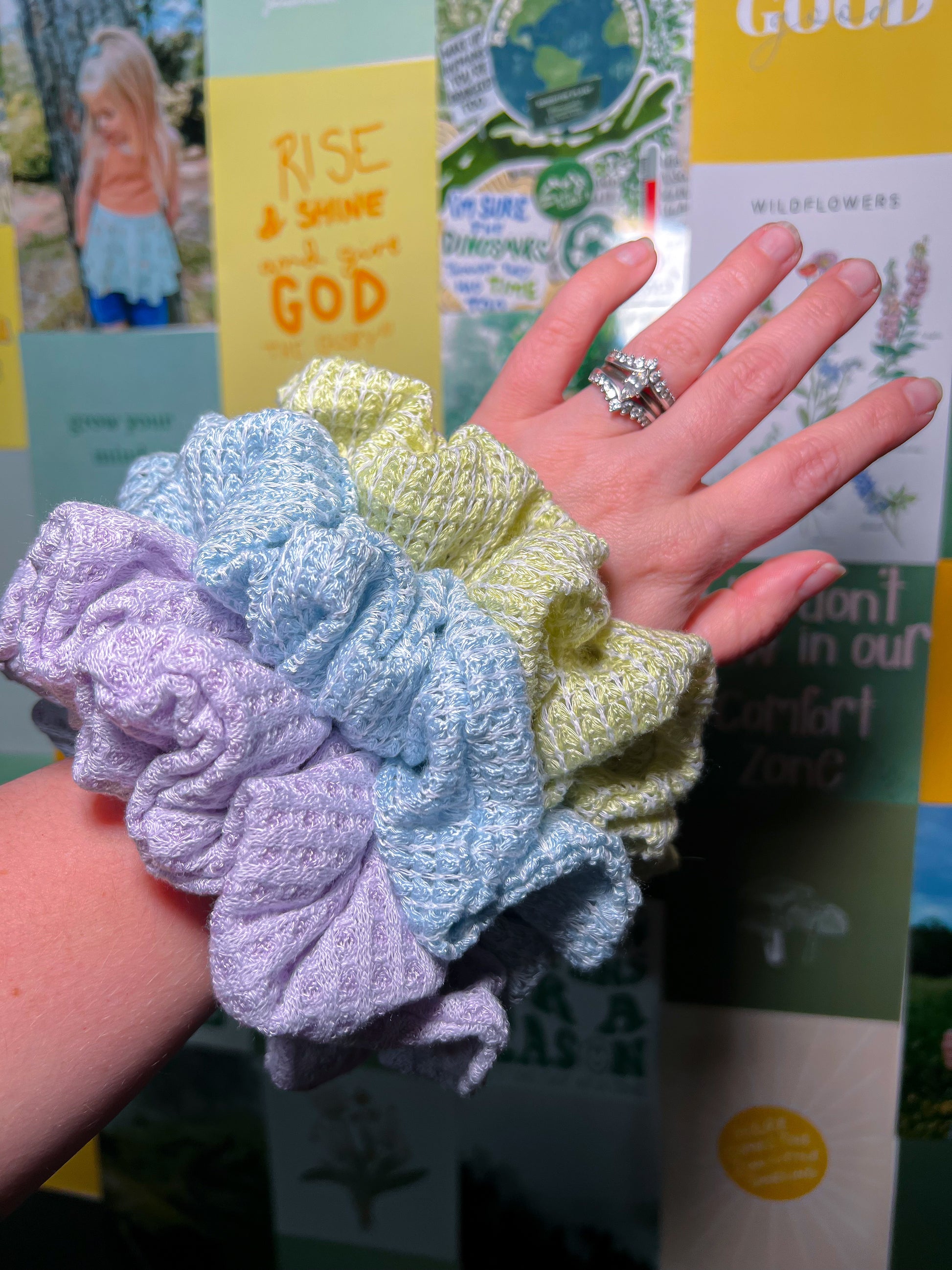 Get ready for spring with our Springtime Scrunchie Bundle! This bundle includes one Garden Grown scrunchie, one Lavender Fields scrunchie, & one Blue Yonder scrunchie. This set is not only perfect for Easter, but will also be a staple all season long. Made with high-quality materials, this scrunchie is perfect for any occasion. Add a pop of color to your hair and elevate any outfit. This item will be packaged and shipped within 1-5 business days.